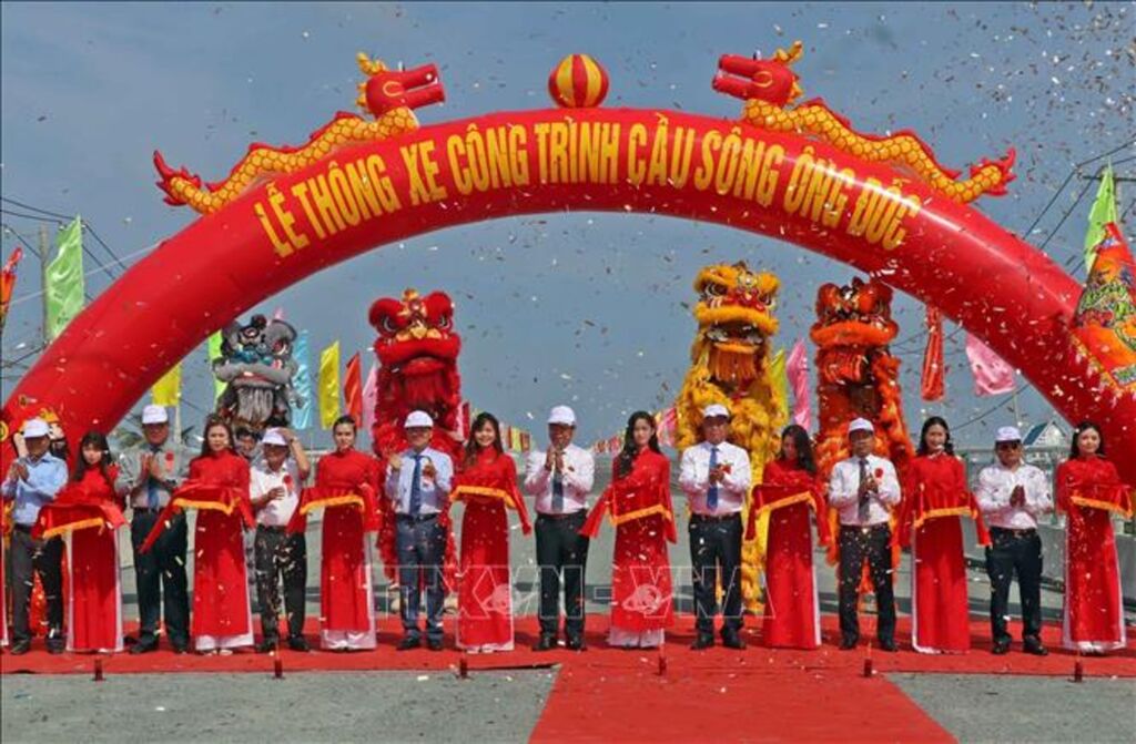 | Cérémonie d'ouverture au trafic du pont reliant les deux rives du fleuve Ông Dôc, le 10 décembre 2023. |