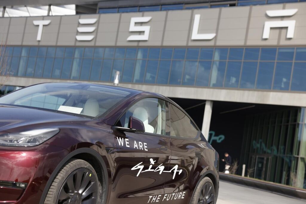 | Un Model Y de Tesla stationné devant l'usine du groupe à Gruenheide, en Allemagne, le 13 mars. |