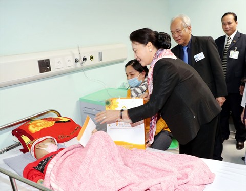 | La présidente de l’AN Nguyên Thi Kim Ngân offre des cadeaux à des enfants cancéreux à l'Hôpital national de pédiatrie à Hanoï. |