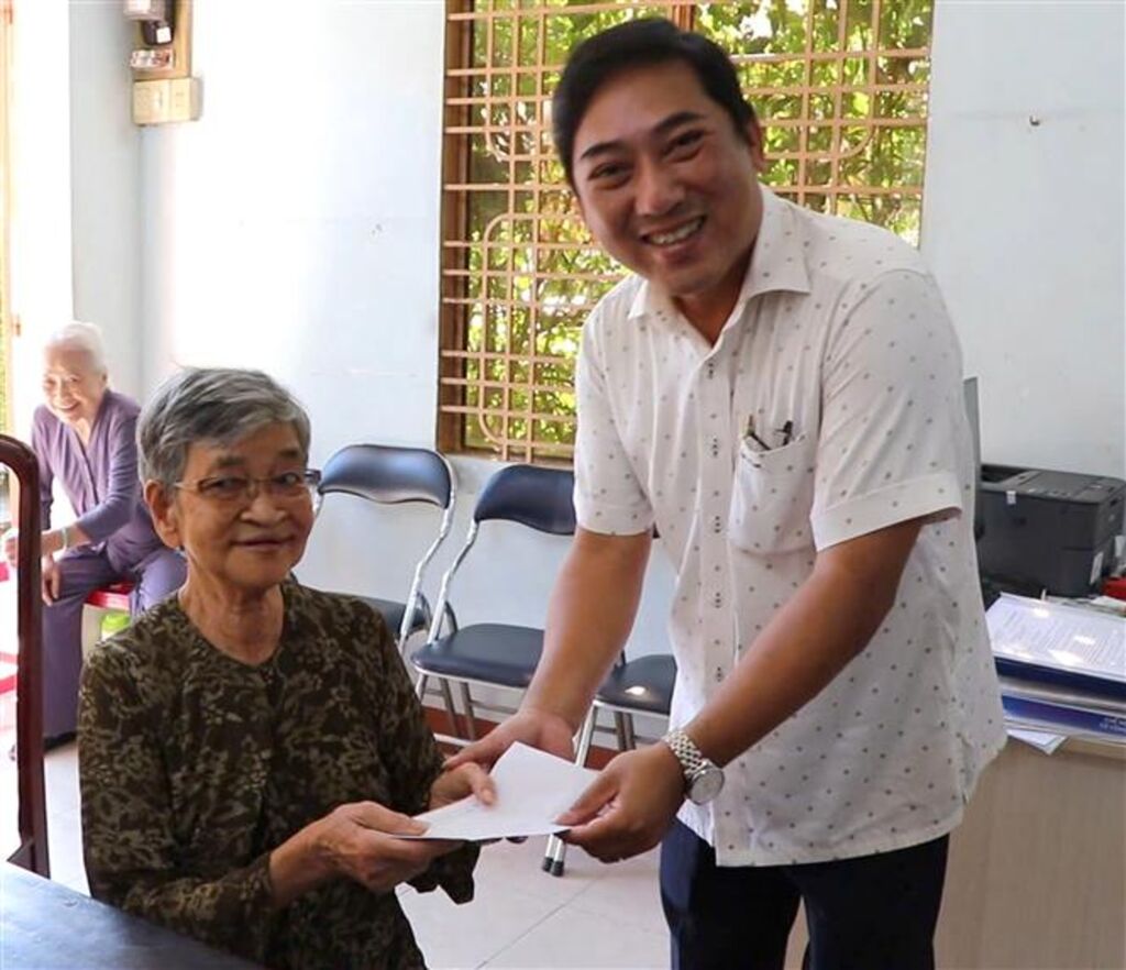 | Remise d’un cadeau du Parti et de l’État à une personne âgée méritante à Hô Chi Minh-Ville. |