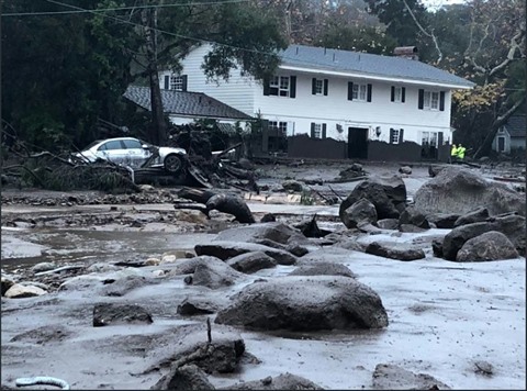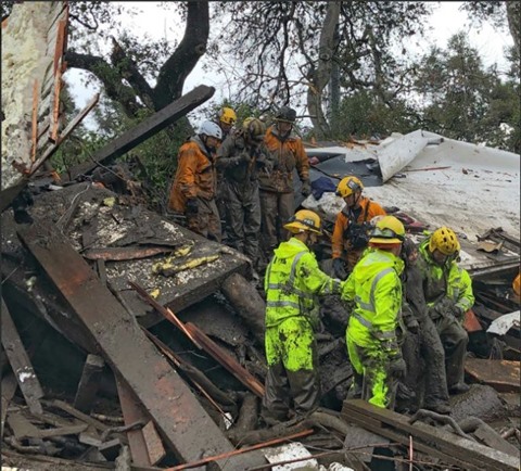 | Les pompiers californiens ont secouru une adolescente, coincée dans une maison de Montecito emportée par une coulée de boue le 9 janvier. |