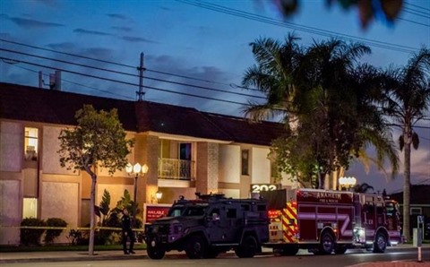 | Sur le lieu de la fusillade à Orange, en Californie, le 31 mars. |