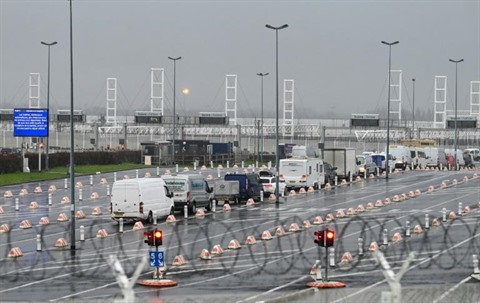 | Des voitures attendent pour entrer dans le terminal Eurotunnel de Calais, le 21 décembre. |
