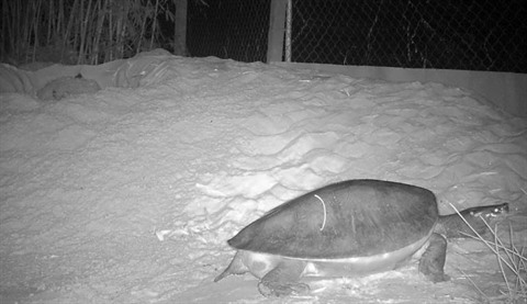| Photo diffusée par le Wildlife Conservation Society (WCS) le 19 janvier d'une tortue royale sur le point de pondre au Centre de conservation de WCS Koh Kong, au Cambodge. |