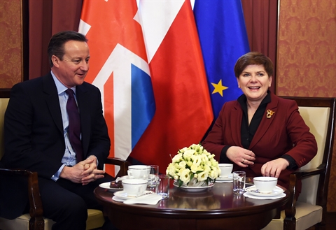 | Le Premier ministre britannique David Cameron et son homologue polonaise Beata Szydlo, le 5 février à Varsovie. |