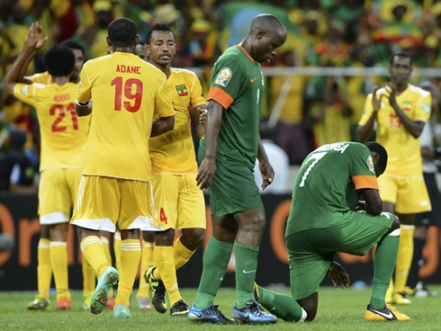 Les Zambiens ont ouvert le score peu avant la pause par Mbesuma (45e+3), mais à dix, leurs adversaires trouvaient les ressources pour égaliser grâce à Adane Girma Gebreyes (65e). Le Nigeria, pour son retour dans le tournoi continental après avoir manqué l'édition 2012, a cru l'emporter sur un joli but d'Emenike (23e).