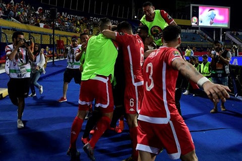 Toujours à égalité à l'issue de la prolongation, les deux équipes ont dû recourir aux tirs au but. Le gardien Farouk Ben Mustapha, entré pour la séance à la place de Mouez Hassen, a stoppé le tir de Caleb Ekuban et envoyé son équipe en quarts.