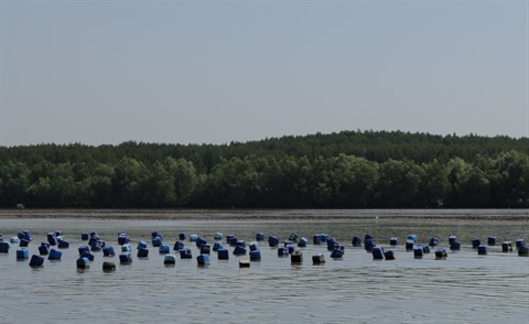 | Élevage d’huîtres sur les côtes de Cân Gio. |