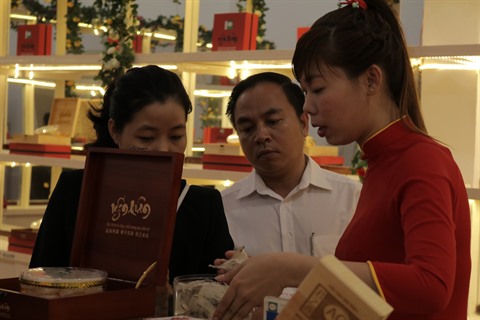 | Des touristes visitent l’espace touristique Yên Quân qui exploite et transforme des produits issus des hirondelles salanganes. |
