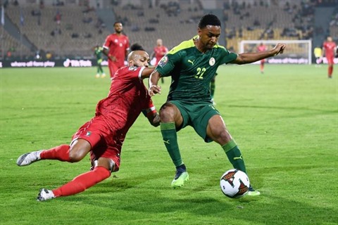 | Le défenseur sénégalais Abdou Diallo (droite) face à la Guinée Equatoriale, en quart de la CAN, le 30 janvier à Yaoundé |