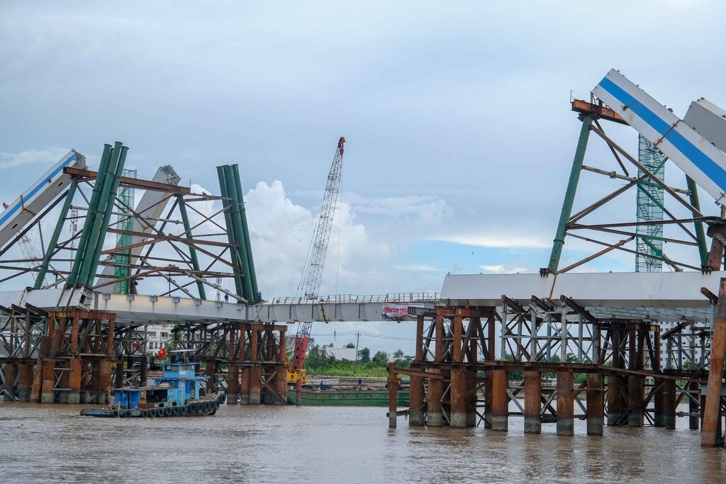 | Chantiers du pont Trân Hoàng Na, à Cân Tho (delta du Mékong). |