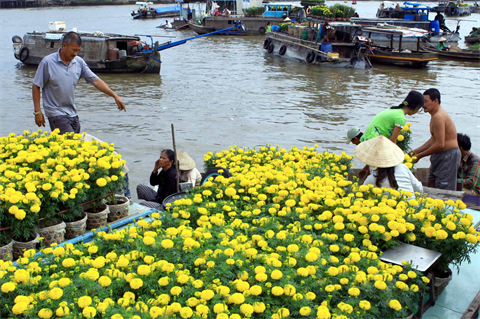| Le marché flottant de Cái Rang à Cân Tho (delta du Mékong) |