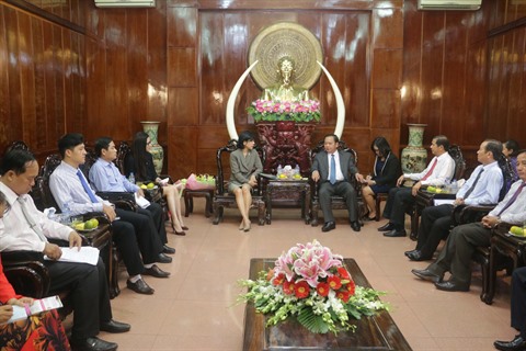 | Le secrétaire du Comité du Parti de Cân Tho, Trân Quôc Trung (droite), reçoit l'ambassadrice du Canada au Vietnam, Ping Kitnikone, le 14 mars. |