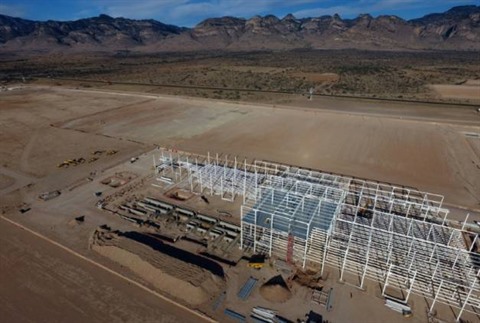 | La structure d'une usine Ford, dans le désert de San Louis Potosi, le 11 janvier au Mexique. |