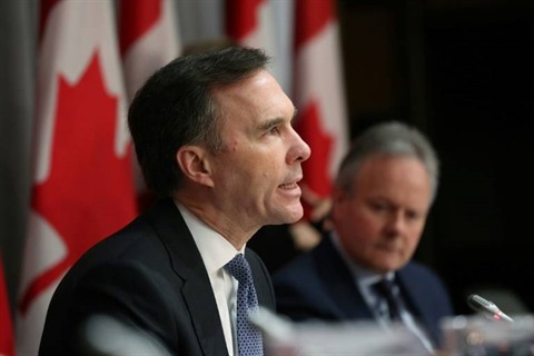 | Le ministre canadien des Finances, Bill Morneau, lors d'une conférence de presse à Ottawa, au Canada, le 18 mars. |