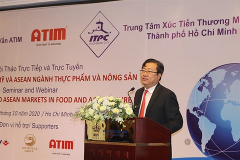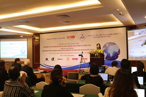 Le Centre de promotion du commerce et de l’investissement de Hô Chi Minh-Ville (ITPC) a organisé, en collaboration avec la société par actions de conseil ATIM, mercredi 14 octobre dans la mégapole du Sud un séminaire en direct et en ligne intitulé "Expansion des marchés en Amérique du Nord et dans l'ASEAN pour les produits alimentaires et agricoles" avec la participation d'entreprises et d'associations d'import-export.