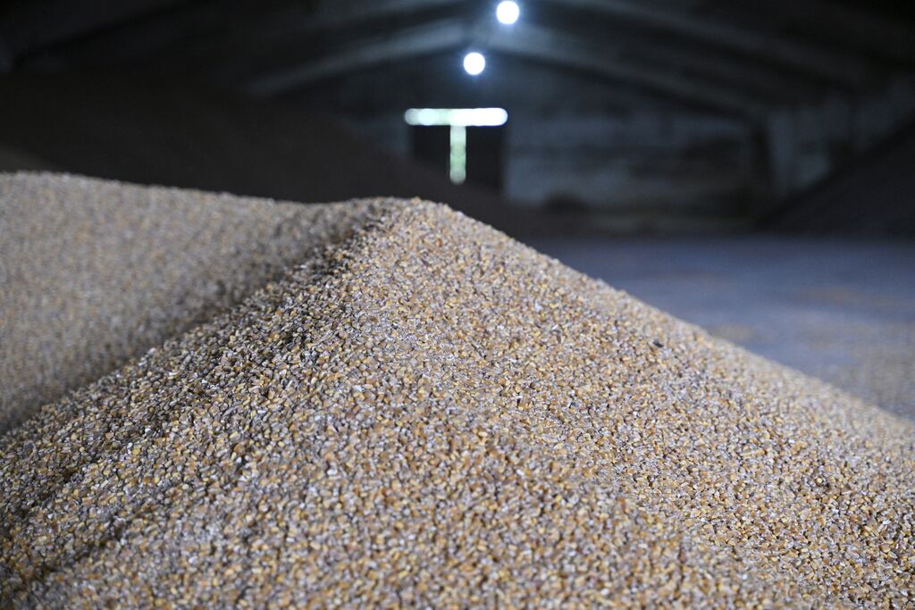 | Du maïs stocké dans une ferme ukrainienne à Odessa. |