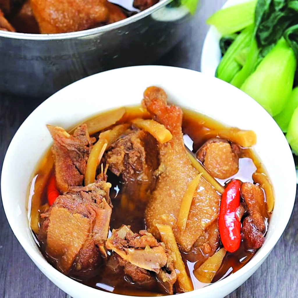 - Le canard mijoté à la noix de coco doit présenter une belle couleur ambrée. La chair est tendre sans être filandreuse, parfumée au gingembre et équilibrée entre le salé et le sucré.