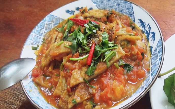 - Faites d’abord revenir l’oignon émincé, l’ail, le gingembre et le piment dans un peu d’huile de cuisson. À cette étape, vous pouvez ajouter un peu de nuoc mam à l’oignon, à l’ail et au gingembre, ce qui rendra le plat beaucoup plus parfumé.