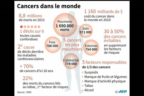 Le cancer, ou l'ensemble des pathologies qu'on regroupe sous ce nom générique, a tué 8,8 millions de personnes en 2015 selon l'Organisation mondiale de la santé.