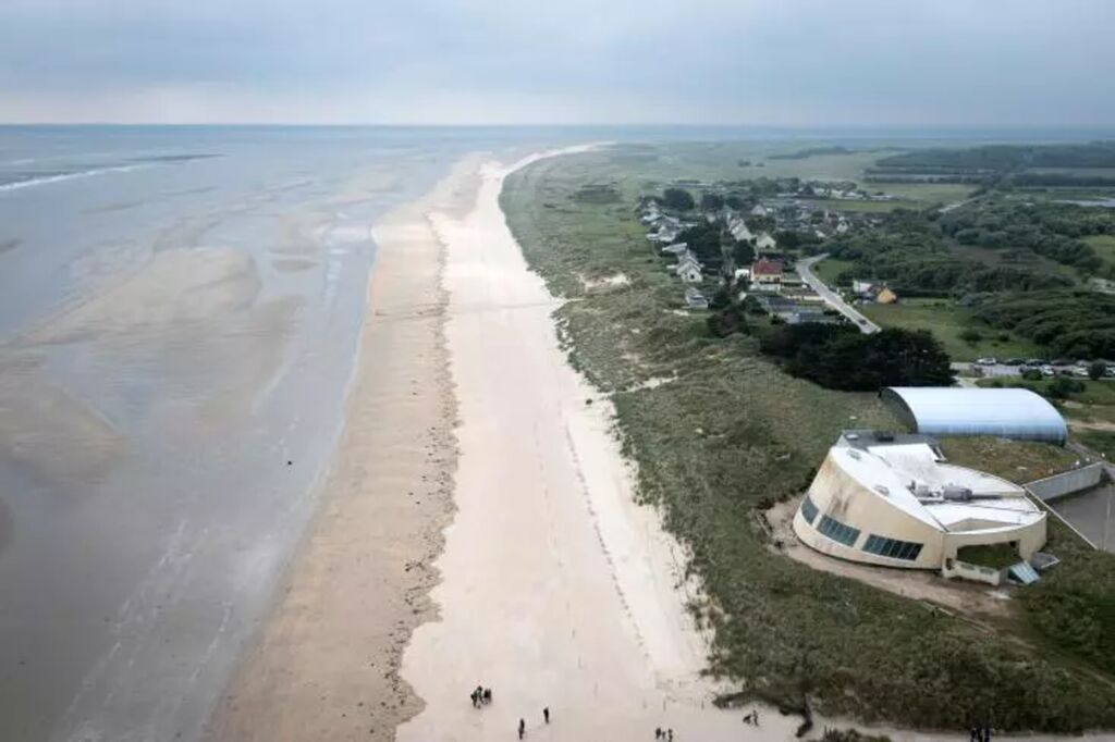 | Vue aérienne d'Utah Beach, l'une des plages utilisées lors du débarquement allié de la Seconde Guerre mondiale à Sainte-Marie-Du-Mont, en Normandie. |