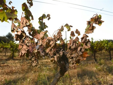 | Vignes brûlées par le soleil le 30 juin 2019 à Sussargues, près de Montpellier. |