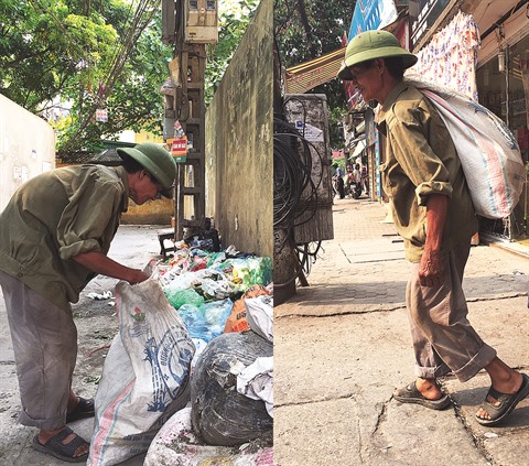 Et pourtant, Pham Duy Dung, 68 ans, passe comme d’habitude sa journée à fouiller les immondices, afin de récupérer ce qu’il pourra revendre aux ferrailleurs. Il remonte la rue Truong Đinh, longue de 3,5 km, dans l’arrondissement de Hoàng Mai, dont les nombreuses ruelles sont envahies de décharges sauvages. Cela fait une trentaine d’années qu’il gagne sa vie dans les déchets. Un «sale boulot», au sens propre comme au sens figuré.