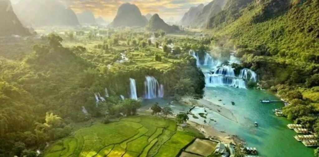 Destination phare du Géoparc mondial UNESCO Non nuoc Cao Bang, la cascade de Ban Giôc fait partie des 21 plus belles cascades du monde sélectionnées par le magazine de voyage américain Travel+Leisure. Elle est non seulement l’une des plus grandes d’Asie du Sud-Est mais aussi l’une des quatre plus grandes cascades du monde situées à la frontière d’un pays.