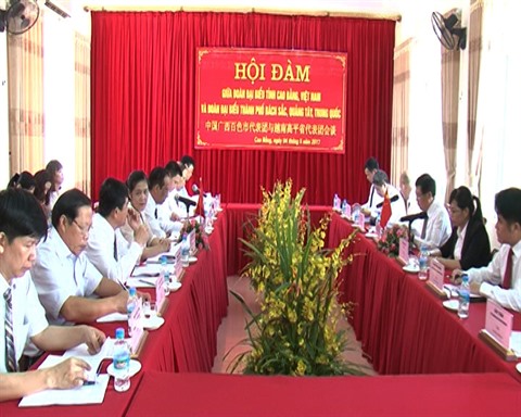 | Entretien entre les autorités de la province de Cao Bang et la délégation de la ville de Baise, province chinoise du Guangxi, le 4 mai à Cao Bang. |