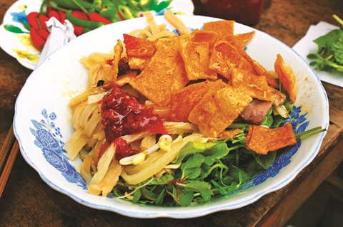 Spécialité de Hôi An, cette soupe est cuisinée à base de nouilles de riz, de fines tranches de porc, d’herbes aromatiques, le tout recouvert d’un délicieux bouillon.