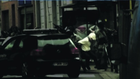 | Capture d'écran de l'arrestation de Salah Abdeslam, le 18 mars à Molenbeek. |