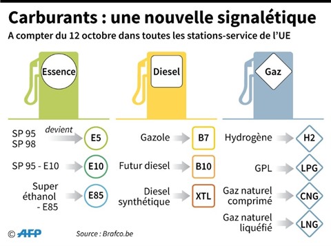C'est l'Union européenne qui a imposé les nouvelles exigences en matière d'étiquetage pour les véhicules neufs et les stations-service, dans une directive datant de 2014. Le nouveau système harmonisé, généralisé vendredi 12 octobre, permettra ainsi aux automobilistes de s'y retrouver d'Helsinki à Palerme.