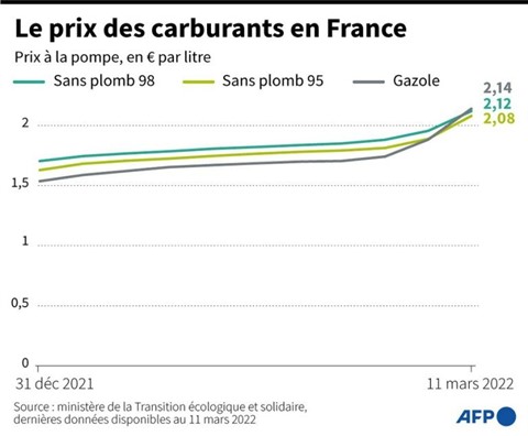 Le litre de gazole valait 2,1407 euros en moyenne, soit une hausse d'environ 40 centimes en deux semaines, selon les derniers chiffres officiels hebdomadaires arrêtés à vendredi 11 mars.