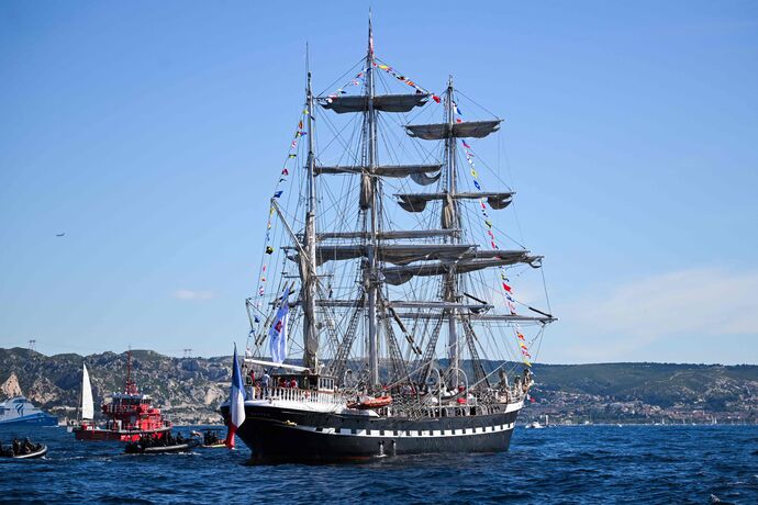 >> Début de la parade maritime pour l'arrivée de la flamme olympique à Marseille