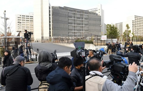 | Des journalistes attendent devant le centre de détention de Tokyo où se trouve Carlos Ghosn, le 20 décembre. |