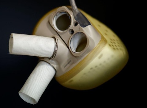 | Un coeur artificiel conçu par l'entreprise française Carmat en août 2018. |