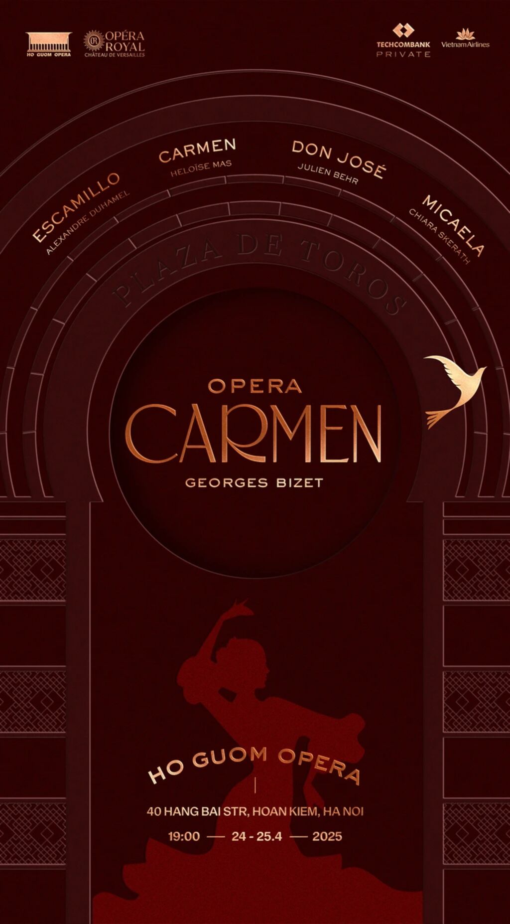 Contrairement à de nombreuses versions déjà jouées dans le monde entier, Carmen au Théâtre Hô Guom recréera fidèlement la production originale de 1875, de la scénographie aux costumes, en passant par le son et les décors, a déclaré Thai Minh Diêm Tu, directrice marketing de Techcombank.