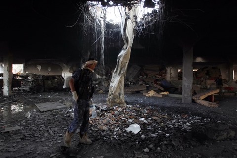| Destruction après des raids aériens sur Sanaa qui ont fait plus de 140 morts, le 8 octobre 2016. |