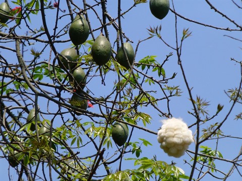 Et pour terminer cette petite promenade arboricole, je vais vous indiquer quel est l’arbre qui me surprend le plus au Vietnam: c’est le kapokier (arbre à coton). Il donne des fruits avec une fibre végétale soyeuse et légère, constituant le feutre, et que l’on utilise pour son élasticité et son imperméabilité à la chaleur. Un arbre avec lequel on peut rembourrer des coussins, c’est quand même unique.