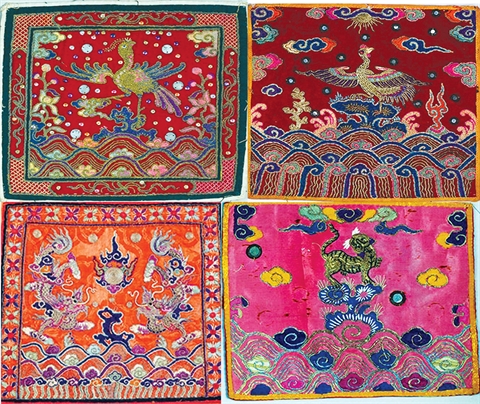 | Quelques modèles de carrés mandarins conservés au Musée national de l’histoire du Vietnam, à Hanoi. |