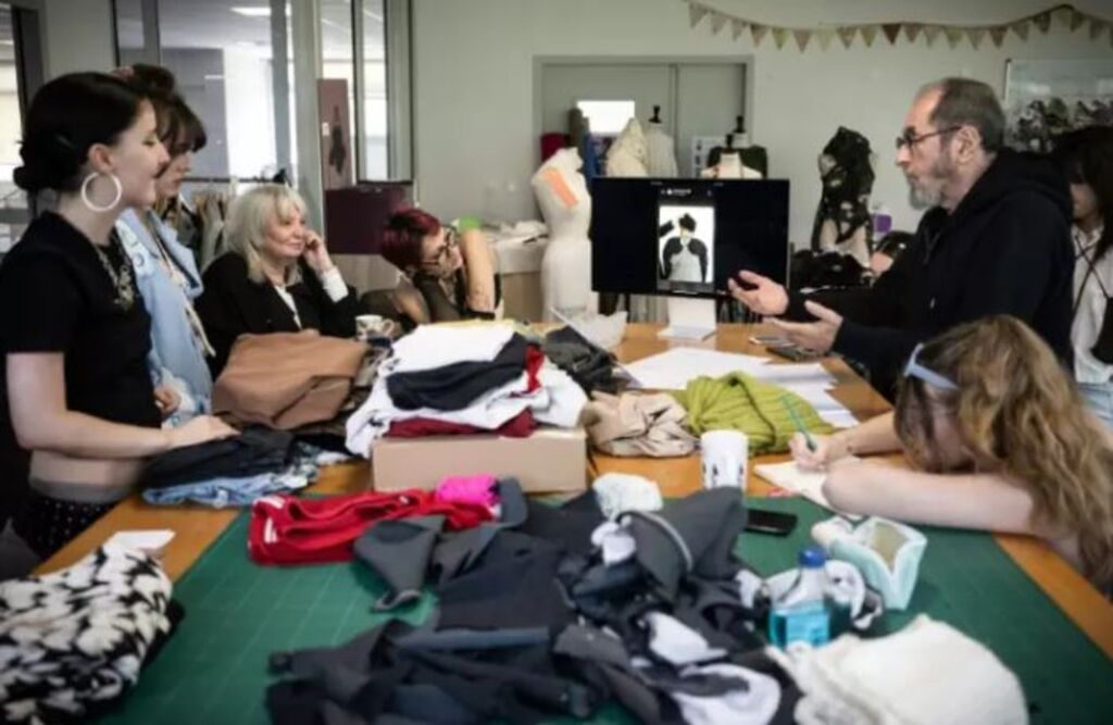 Debout autour d'une haute table en bois clair, 13 jeunes écoutent les fondateurs de la marque "Marithé + François Girbaud" analyser leur travail. Des vêtements du couturier Valentino que les étudiants ont revisités pour les rendre plus "casual", adaptés au quotidien.
