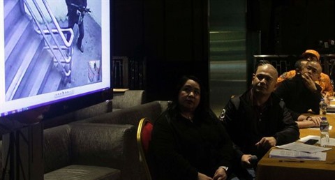| L'auteur de l'attaque d'un casino de Manille (à l'écran à gauche) sur des images de vidéosurveillance, le 3 juin 2017 dans la capitale philippine. |