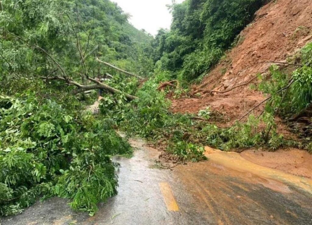 | Une route est bloquée par un glissement de terrain dans la province montagneuse de Cao Bang (Nord). |