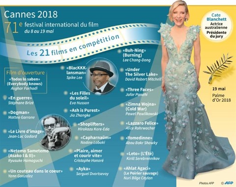 Parmi les 21 longs métrages en lice pour la Palme d'or figureront notamment le dernier opus de la légende Jean-Luc Godard, celui de l'Américain Spike Lee, de retour 27 ans après Jungle Fever, mais aussi ceux du Russe Kirill Serebrennikov et de l'Iranien Jafar Panahi, cinéastes sous surveillance dans leur pays, qui ne pourront pas venir sur la Croisette.