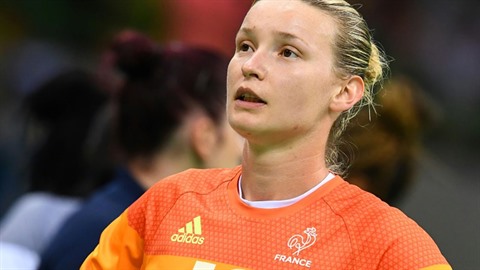| La gardienne Amandine Leynaud, titulaire avec les Bleues ici contre la Russie aux JO de Rio aura pour doublure Catherine Gabriel durant le Mondial de hand. |