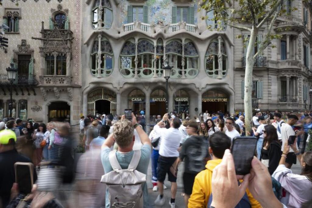 | Des touristes rassemblés devant la Casa Batllo à Barcelone (Espagne), le 11 octobre. |