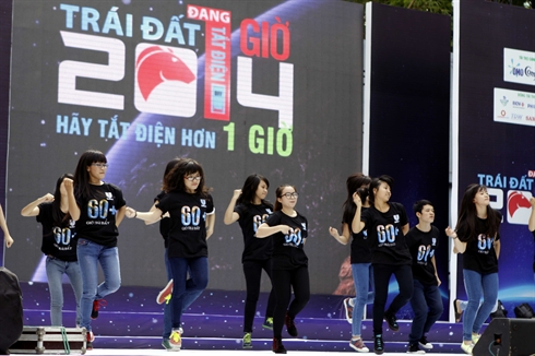| Les bénévoles au spectacle "Danse flash mob" en écho de la campagne de l'Heure de la Terre, le 29 mars à Hô Chi Minh-Ville. |