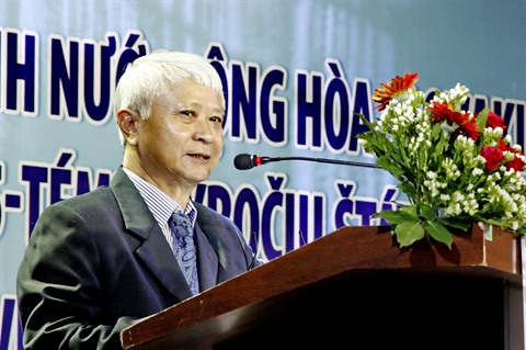 | Bùi Quang Hai, président de l'Association d'amitié Vietnam - Slovaquie de Hô Chi Minh-Ville prend la parole lors de la rencontre en l’honneur de la 25e Fête nationale de la République slovaque. |
