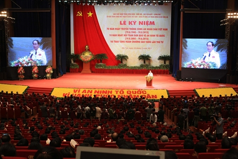 Lors de la cérémonie, au nom des dirigeants du Parti et de l’État, le président Truong Tân Sang a remis l’Ordre de l’Étoile d’or (4e fois), grande distinction du Parti et de l’État, aux forces de la Police populaire du Vietnam héroïque pour ses grandes contributions à la cause révolutionnaire du Parti et de la nation.