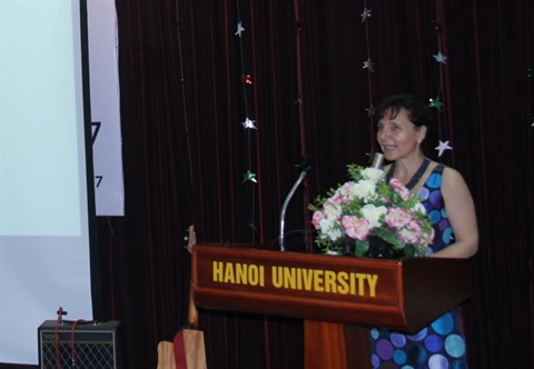 | Mme l’ambassadeur Cecilia Piccioni prend la parole à la rencontre, le 1er juin à Hanoï. |